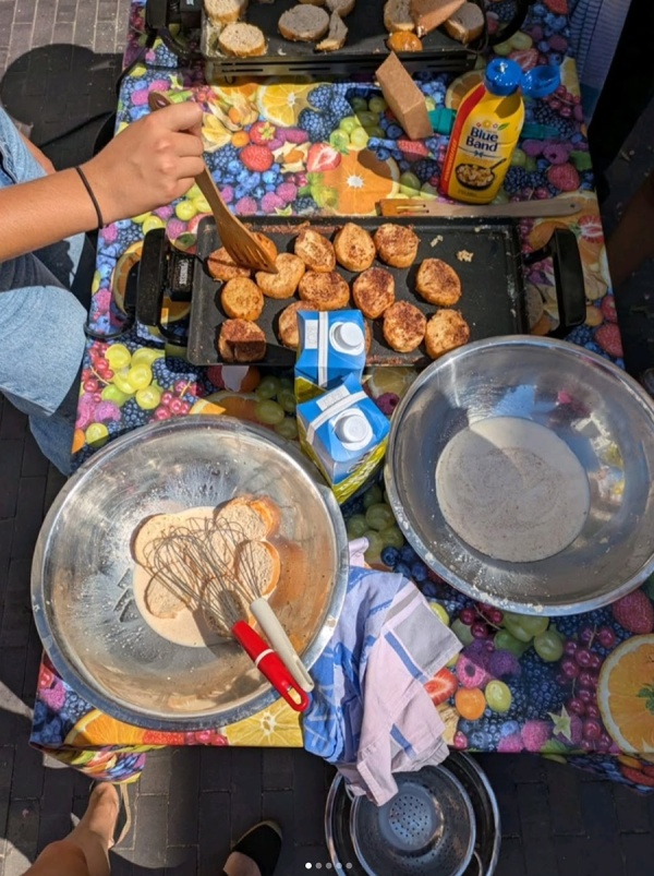 Vervolgens gingen de leerlingen zelf aan de slag met een workshop klimaatneutraal koken met bijzondere groenten en insecten; hebben ze bomen op ons eigen schoolplein beklommen om te bekijken wat de bomen zelf kunnen vertellen over het klimaat, er is kleding gerepareerd en er zijn spandoeken gemaakt die uiting gaven aan de zorgen van onze leerlingen over hot klimaat. We sloten de ochtend feestelijk af met de Klimaatquiz. 🏆