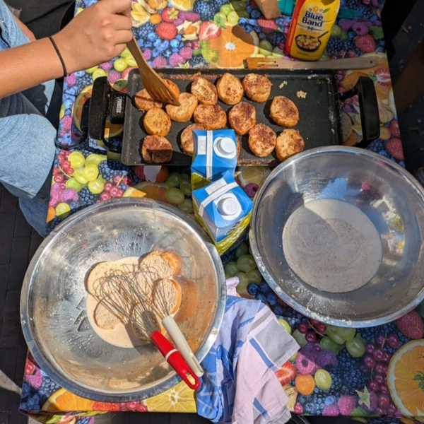 Vervolgens gingen de leerlingen zelf aan de slag met een workshop klimaatneutraal koken met bijzondere groenten en insecten; hebben ze bomen op ons eigen schoolplein beklommen om te bekijken wat de bomen zelf kunnen vertellen over het klimaat, er is kleding gerepareerd en er zijn spandoeken gemaakt die uiting gaven aan de zorgen van onze leerlingen over hot klimaat. We sloten de ochtend feestelijk af met de Klimaatquiz. 🏆